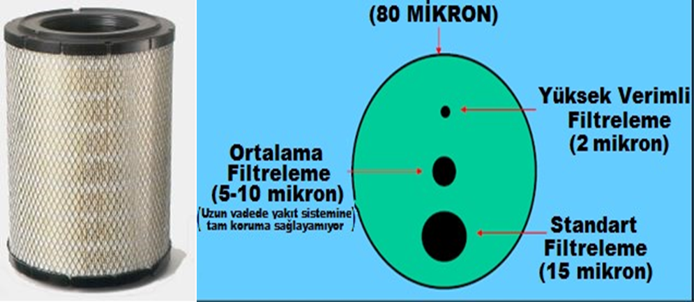 - Püskürtmə (inyeksiya) nasosu və forsunkalar 1/1000 mm dəqiqlikdə işlənmiş həssas hissələrdir. Bu səbəbdən yanacağı çirkləndirən hava və ya su mühərrik performansına böyük dərəcədə təsir edir. Yanacaq filtri və su ayırıcı filtr su və toz kimi maddələrin yanacağın tərkibindən təmizlənməsini təmin edir.